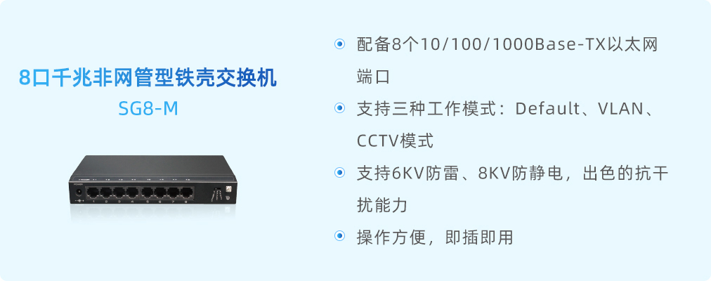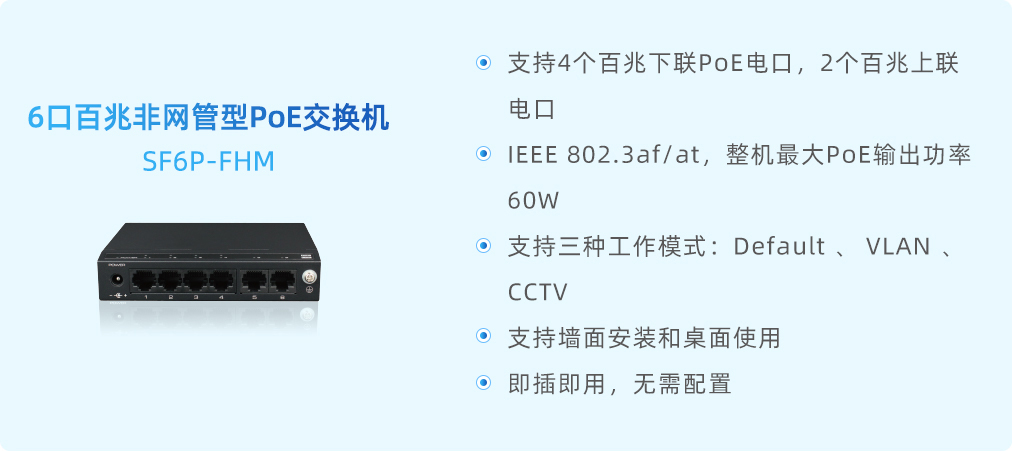 該系列交換機支持Default、VLAN(虛擬局域網(wǎng))和CCTV三種工作模式,這種多樣化的工作模式為用戶提供了極大的靈活性和便捷性。Default模式所有端口均可自由通信,適用于簡單網(wǎng)絡(luò)環(huán)境,無需復(fù)雜配置即可快速搭建;VLAN模式下聯(lián)端口相互隔離,但可與上聯(lián)端口通信,能夠有效隔離不同部門的網(wǎng)絡(luò)流量,提升網(wǎng)絡(luò)的安全性和管理效率;而CCTV模式則是針對安防監(jiān)控系統(tǒng)的特殊需求定制,通過一鍵設(shè)置即可將下聯(lián)端口速率調(diào)整為10M,并延長最遠傳輸距離至250米,這一特性尤其適合大規(guī)模、遠距離的監(jiān)控網(wǎng)絡(luò)部署。