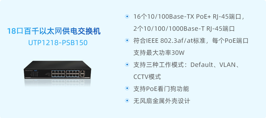 優(yōu)特普1系列交換機不僅具備基礎(chǔ)的網(wǎng)絡(luò)轉(zhuǎn)發(fā)功能,還集成了智能管理特性,如PoE系列交換機支持IEEE 802.3af/at標準,為接入的供電設(shè)備提供智能識別和安全供電,有效避免因供電不足或過載導(dǎo)致的設(shè)備損壞。此外,其內(nèi)置的PoE看門狗技術(shù)更是實現(xiàn)了對終端設(shè)備的24小時智能監(jiān)測,一旦發(fā)現(xiàn)設(shè)備異?;螂x線,將自動進行重啟或上報故障信息,極大地減輕了運維人員的工作負擔,降低了維護成本。
