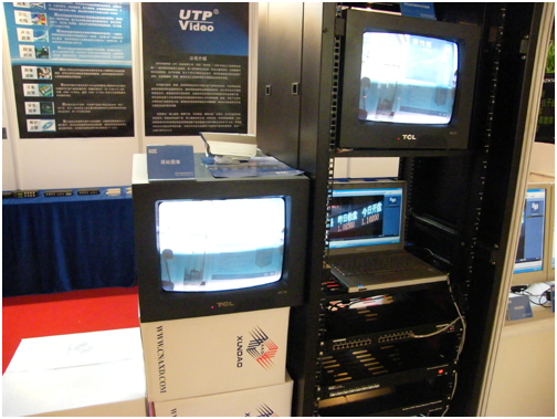 雙絞線傳輸器監(jiān)控系列產(chǎn)品的展示平臺,客戶可以在現(xiàn)場看到兩種視頻效果,一種是攝像機的本地效果,也就是用同軸線傳輸1米的實際效果;一種是通過雙絞線傳輸器傳輸1000米的圖像效果,這兩個效果直接放在一起,利于觀眾的對比。