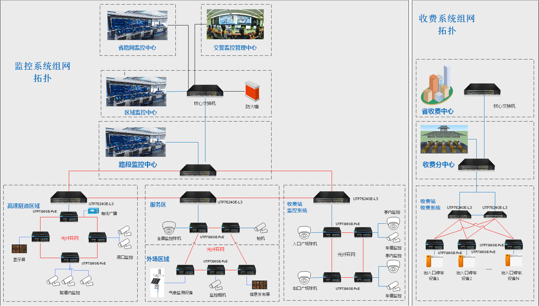 適用場景:收費(fèi)站,服務(wù)區(qū)的核心層傳輸