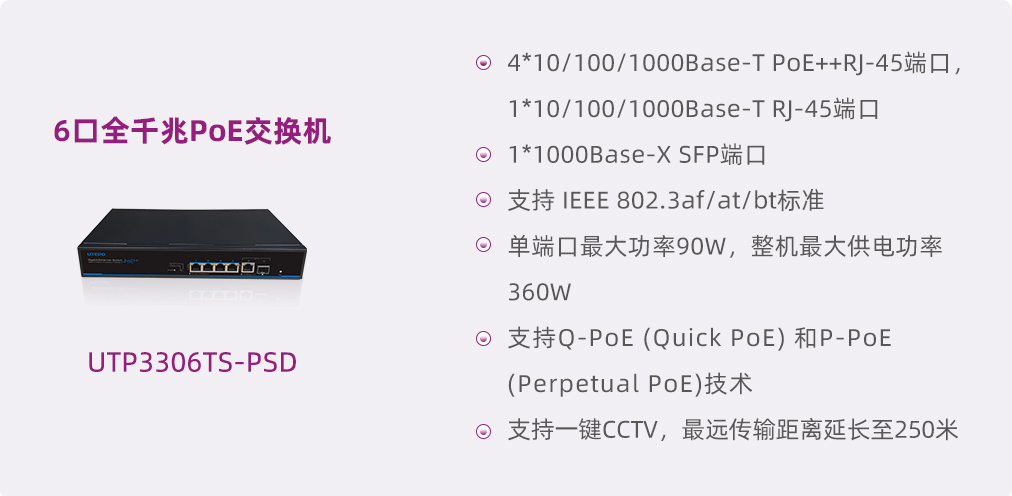 尤為值得一提的是,優(yōu)特普3系列PoE交換機(jī)支持IEEE 802.3af/at/bt標(biāo)準(zhǔn),這意味著它們能夠輕松接入并供電給各類支持PoE的終端設(shè)備,如IP攝像頭、無線接入點(diǎn)、VoIP電話等。單端口最大功率可達(dá)30W或90W,這一特性極大地?cái)U(kuò)展了網(wǎng)絡(luò)設(shè)備的部署范圍,降低了布線成本,提升了系統(tǒng)的整體靈活性。此外,優(yōu)特普還創(chuàng)新性地引入了Q-PoE(Quick PoE)和P-PoE(Perpetual PoE)等管理功能,前者通過簡化配置流程,實(shí)現(xiàn)快速部署;后者則確保了PoE供電的穩(wěn)定性和持續(xù)性,即使在極端情況下也能保證關(guān)鍵設(shè)備的正常運(yùn)行。而PoE看門狗功能,更是為網(wǎng)絡(luò)運(yùn)維人員提供了一道安全防線,當(dāng)檢測到PoE供電異常時(shí),能夠自動重啟設(shè)備,恢復(fù)供電,有效避免系統(tǒng)因單點(diǎn)故障而全面癱瘓。