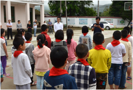 明德小學(xué)黃黎明校長對考察團(tuán)表示衷心的感謝,帶領(lǐng)同學(xué)們?yōu)榭疾靾F(tuán)嘉賓佩戴上了鮮艷的紅領(lǐng)巾,并號召同學(xué)們向聶懷東、聶懷春等學(xué)長學(xué)習(xí),向考察團(tuán)的爺爺奶奶、伯伯阿姨們看齊,刻苦學(xué)習(xí),早日成才。