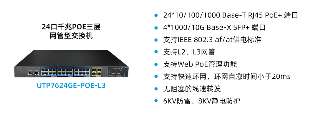 優(yōu)特普7系列商用以太網(wǎng)/PoE交換機在端口設(shè)計上同樣表現(xiàn)出色,采用豐富的光電混合端口設(shè)計,并配備萬兆上聯(lián)端口,滿足了不同場景下對網(wǎng)絡(luò)接口類型的多樣化需求。無論是長距離光纖傳輸,還是短距離連接,都能輕松應對,為用戶提供最大的靈活性和擴展性。此外,該系列PoE交換機還支持IEEE 802.3 af/at供電標準,使得網(wǎng)絡(luò)部署更加靈活,能夠直接為IP攝像頭、無線AP等PoE設(shè)備供電,簡化了布線工作,降低了成本。