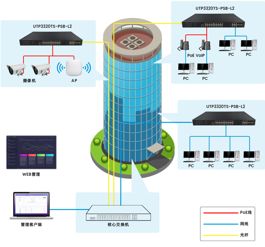 該系列產(chǎn)品提供16個或24個全千兆PoE供電端口,單端口可提供最大30W功率,符合IEEE 802.3af/at標準,可為IP終端(如IP攝像機、IP電話、AP等)提供穩(wěn)定、可靠、節(jié)能、安全的供電保障。上行端口配合4個千兆光電復(fù)用端口,大大擴展了設(shè)備的使用范圍,用戶可根據(jù)具體應(yīng)用需求靈活組網(wǎng)。