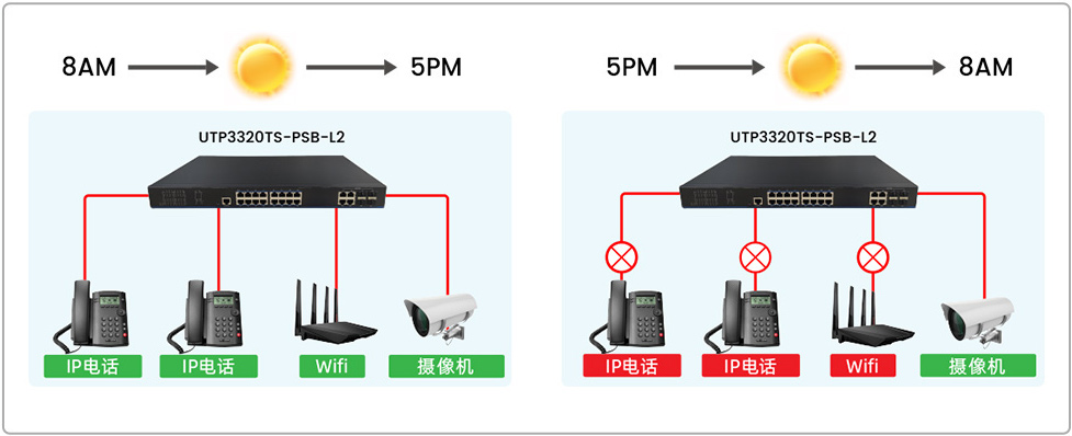 為您的辦公室定制PoE供電計劃表,您可以在非辦公期間停止對部分設(shè)備供電,節(jié)約能源。