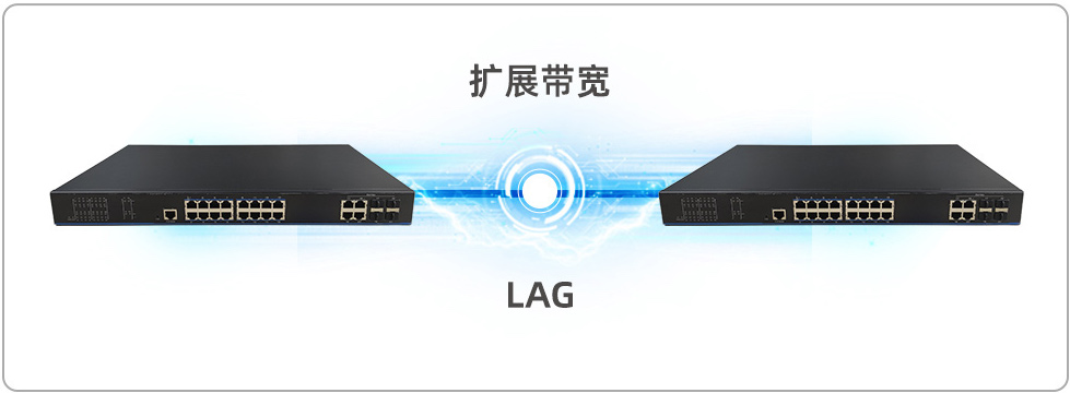 通過鏈路聚合(LAG),用戶可在兩個交換機之間建立多條鏈路以達到擴展帶寬的目的,實現(xiàn)均攤模式。同時,提供鏈路冗余備份,當(dāng)該組某個成員端口鏈路出現(xiàn)故障時,可以最大限度地減輕網(wǎng)絡(luò)故障。