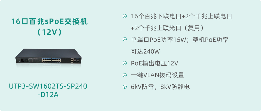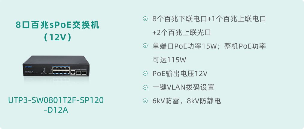 在當(dāng)今數(shù)字化、智能化的時代背景下,網(wǎng)絡(luò)通信設(shè)備作為信息傳輸?shù)幕湫阅芘c穩(wěn)定性直接關(guān)系到各類智能終端設(shè)備的運行效率與用戶體驗。尤其是在構(gòu)建智慧樓宇、智能家居、智慧安防等場景中,以太網(wǎng)供電(Power over Ethernet,簡稱PoE)技術(shù)憑借其便捷性、高效性,成為了連接各類智能終端設(shè)備的優(yōu)選方案。針對標(biāo)準(zhǔn)PoE未能滿足的特定市場需求,優(yōu)特普專門推出sPoE系列簡易版以太網(wǎng)供電交換機進(jìn)行市場補充和完善,如門禁系統(tǒng)中的可視對講機等一些需求低壓供電的終端設(shè)備,為智慧化建設(shè)帶來了全新的、更有效的解決方案。