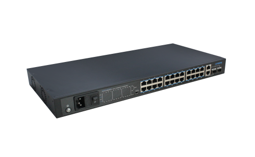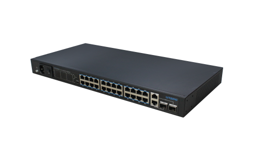 UTP3-SW2402TS-SP360-D12A可提供24個(gè)百兆以太網(wǎng)RJ-45下聯(lián)端口、2個(gè)千兆上聯(lián)電口和2個(gè)復(fù)用的千兆上聯(lián)光口。交換機(jī)所有下聯(lián)RJ-45 端口都支持 PoE供電,單個(gè)端口PoE功率最高可達(dá)15W,整機(jī)PoE功率可達(dá)360W。
