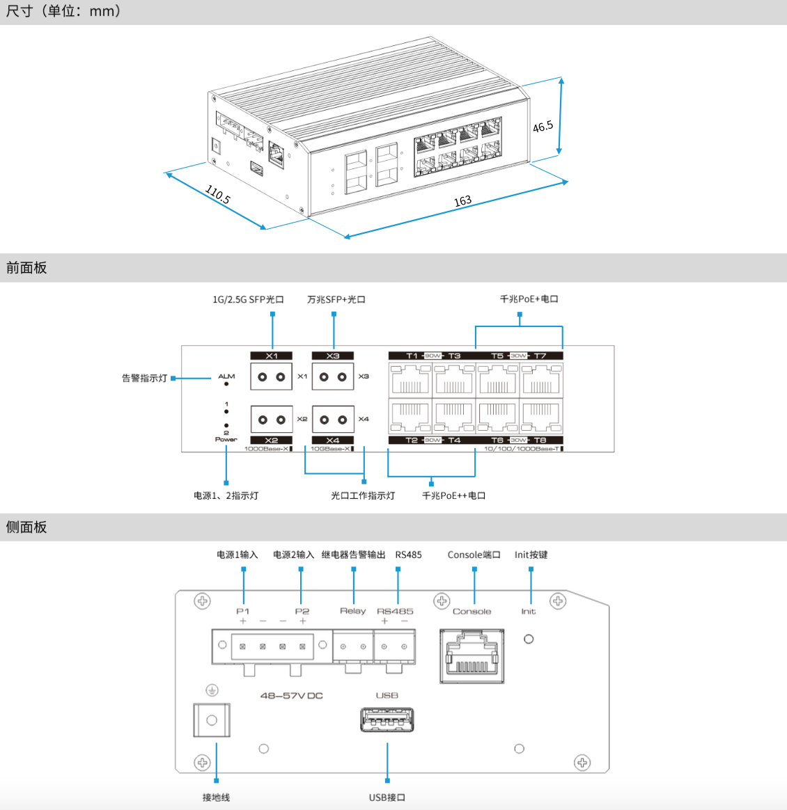 ● 4個10/100/1000Base-T PoE++RJ-45端口