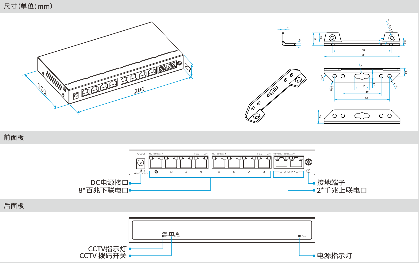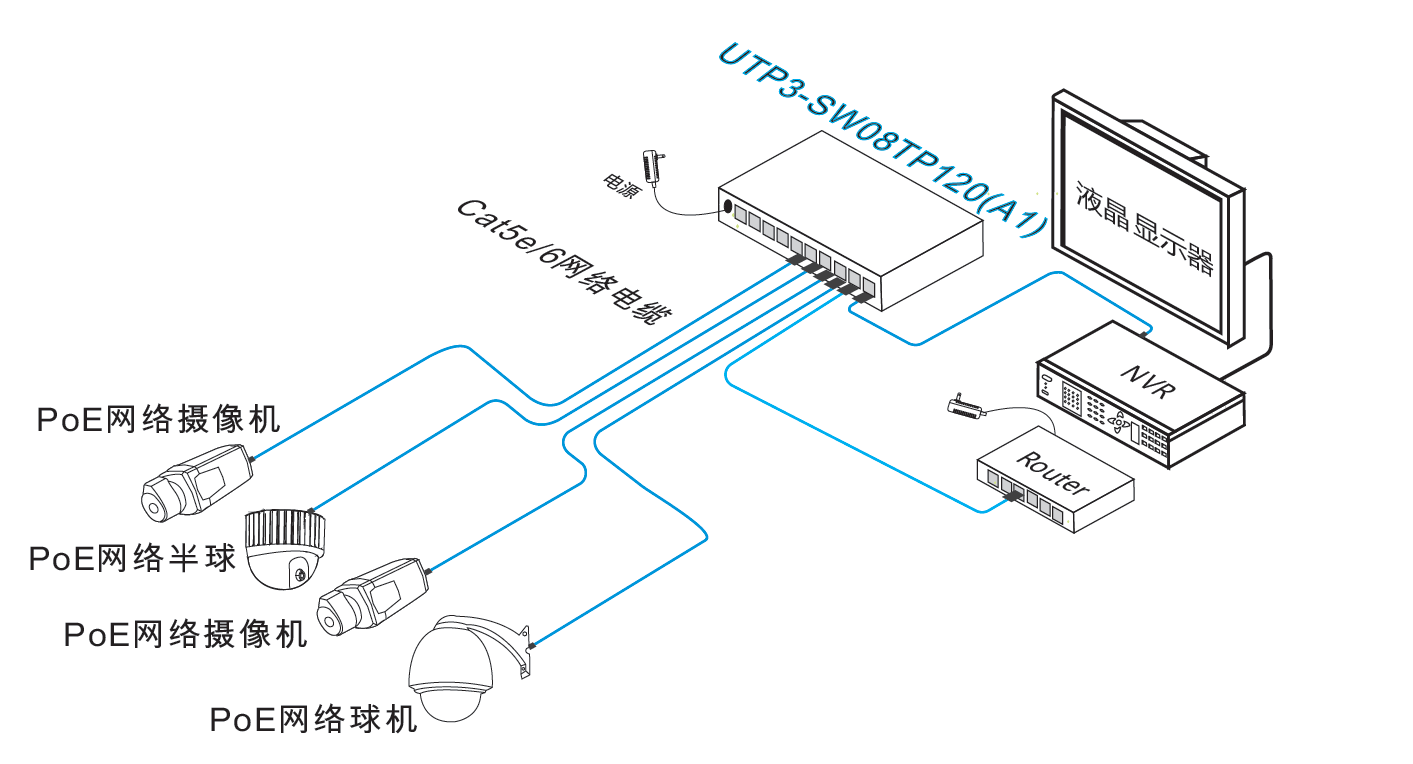 l UTP3-SW08-TP120-A18*10/100Base-TX PoE RJ-45端口, 2*1000Base-T RJ-45端口