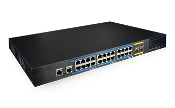 ● 24個(gè)下聯(lián)千兆PoE電口,4個(gè)上聯(lián)萬(wàn)兆光口;