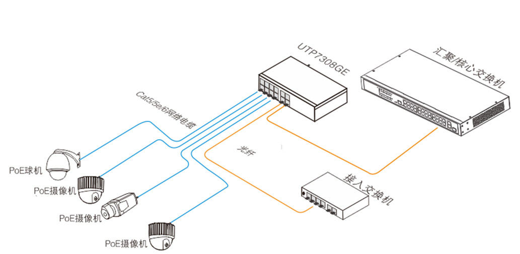UTP7308GE-POE:8*10/100/1000Base-T PoE+ RJ-45端口,4*1000Base-X SFP端口