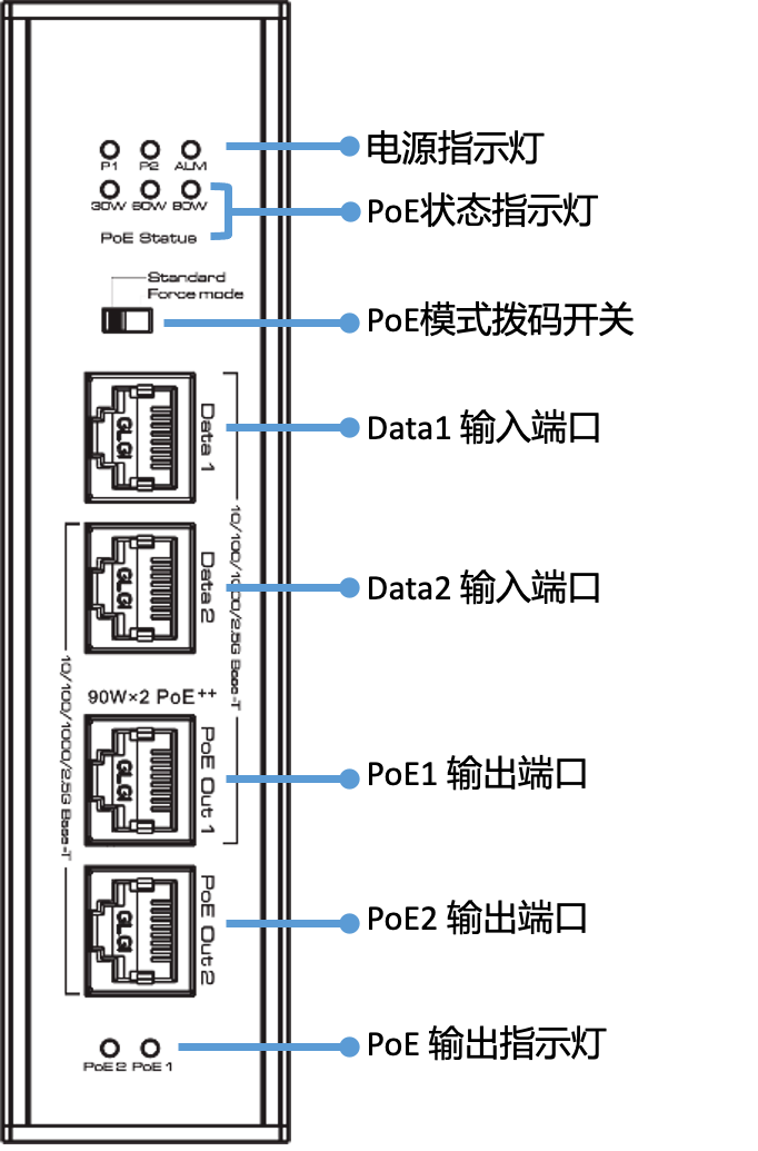 該系列產(chǎn)品為90W工業(yè)級(jí)PoE供電器。